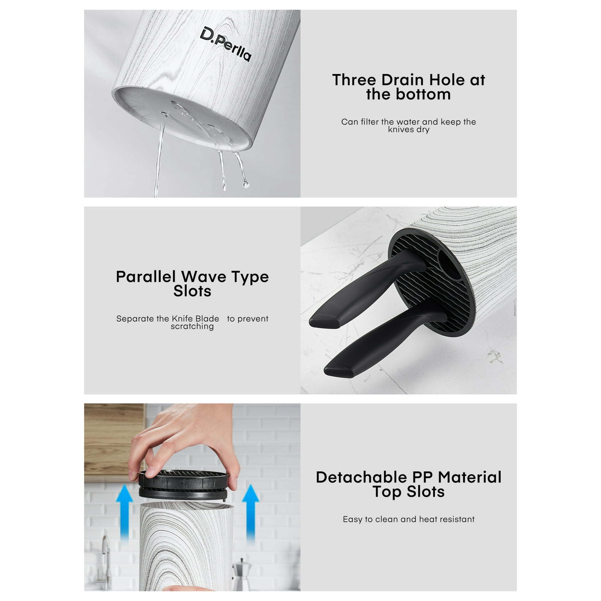 Modern and Save Space Design Knife Holder: The detachable top slot is convenient to clean the inside of the Upright knife block.