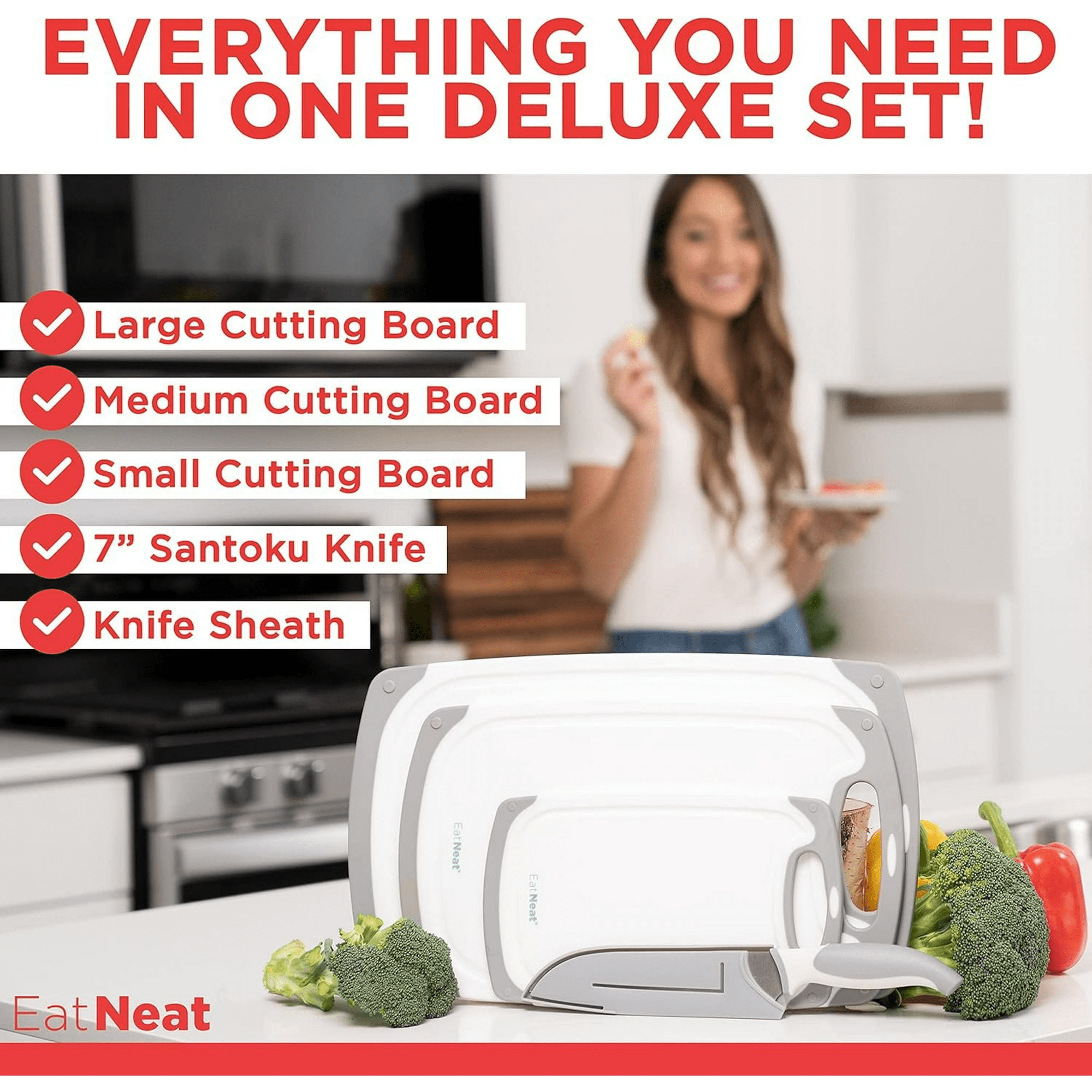 EatNeat 5-Piece Set - Non-Slip Cutting Boards & Stainless Steel Santoku Knife with Sheath. Perfect for Home Kitchen & Outdoor Food Preparation EatNeat 5-Piece Set - Non-Slip Cutting Boards & Stainless Steel Santoku Knife with Sheath. Perfect for Home Kitchen & Outdoor Food Preparation EatNeat 5-Piece Set - Non-Slip Cutting Boards & Stainless Steel Santoku Knife with Sheath. Perfect for Home Kitchen & Outdoor Food Preparation