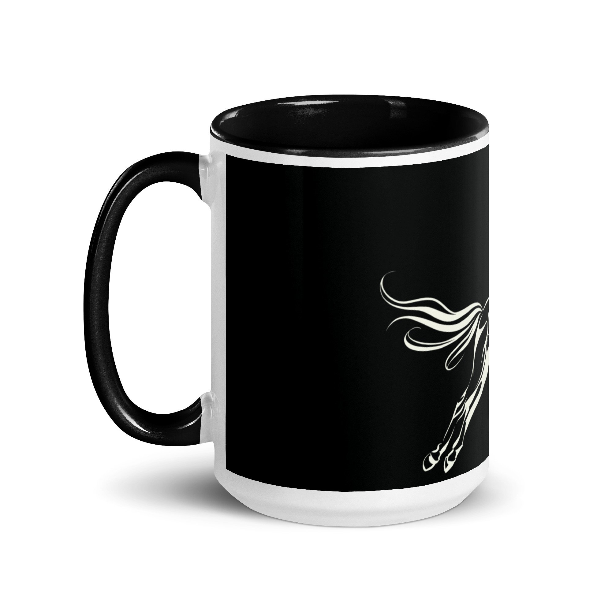 Start your day with the elegance of a galloping horse, captured in a striking black and white design by HadiArt. This Galloping Grace Coffee Mugs ceramic mug, featuring a vibrant color inside, rim, and handle, brings a unique touch to your morning coffee or tea ritual. The powerful and graceful horse artwork adds a dash of inspiration to every sip, making it a perfect addition to your mug collection.