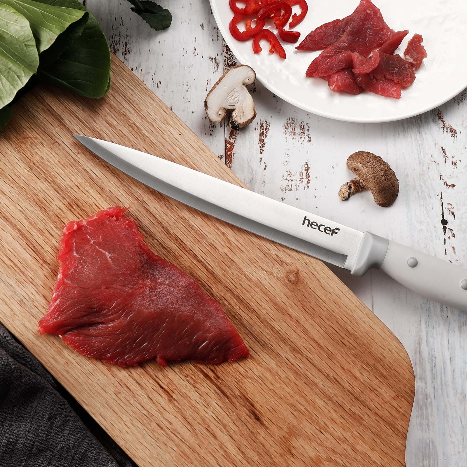 Hecef Kitchen Knife Set of 14 Premium Stainless Steel with Wooden Block, Comfort Grip Hecef Kitchen Knife Set of 14 Premium Stainless Steel with Wooden Block, Comfort Grip Hecef Kitchen Knife Set of 14 Premium Stainless Steel with Wooden Block, Comfort Grip