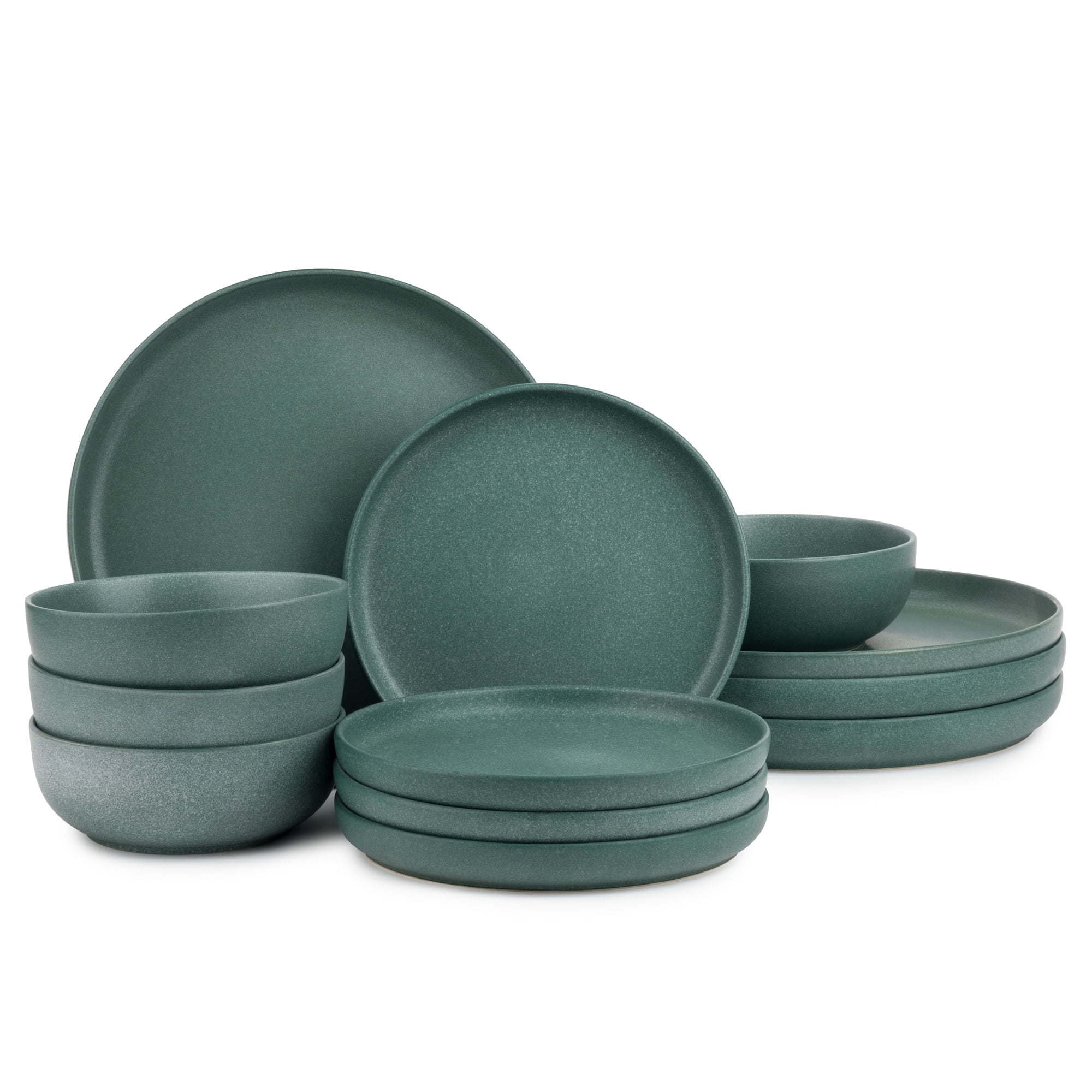 Thyme & Table 12-Piece Stoneware Dinnerware Set, Caspian Green