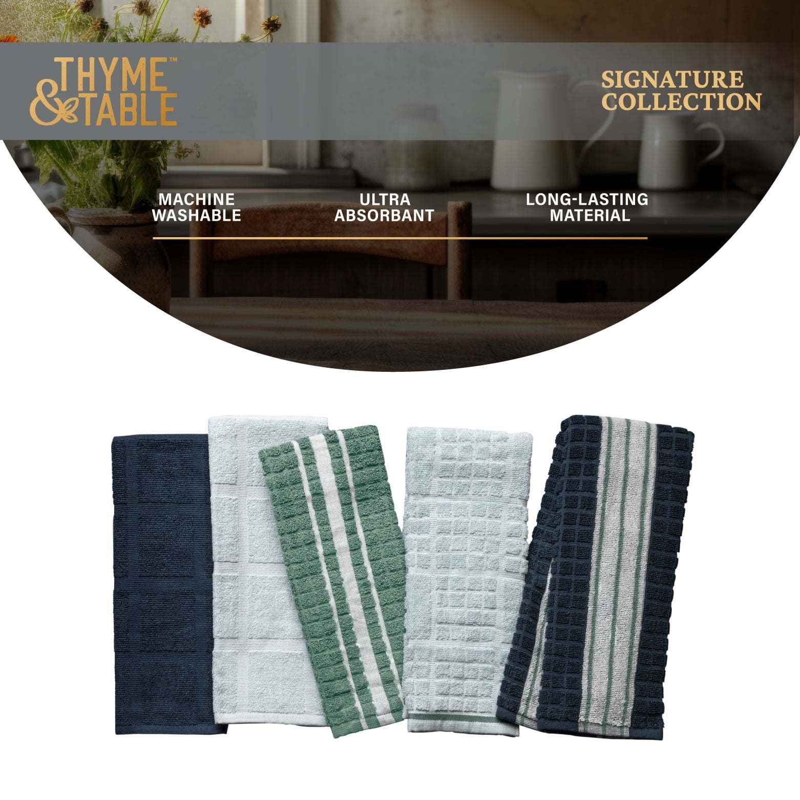 Home > Thyme & Table 5-Piece Set Kitchen Towels, Navy, White, Green