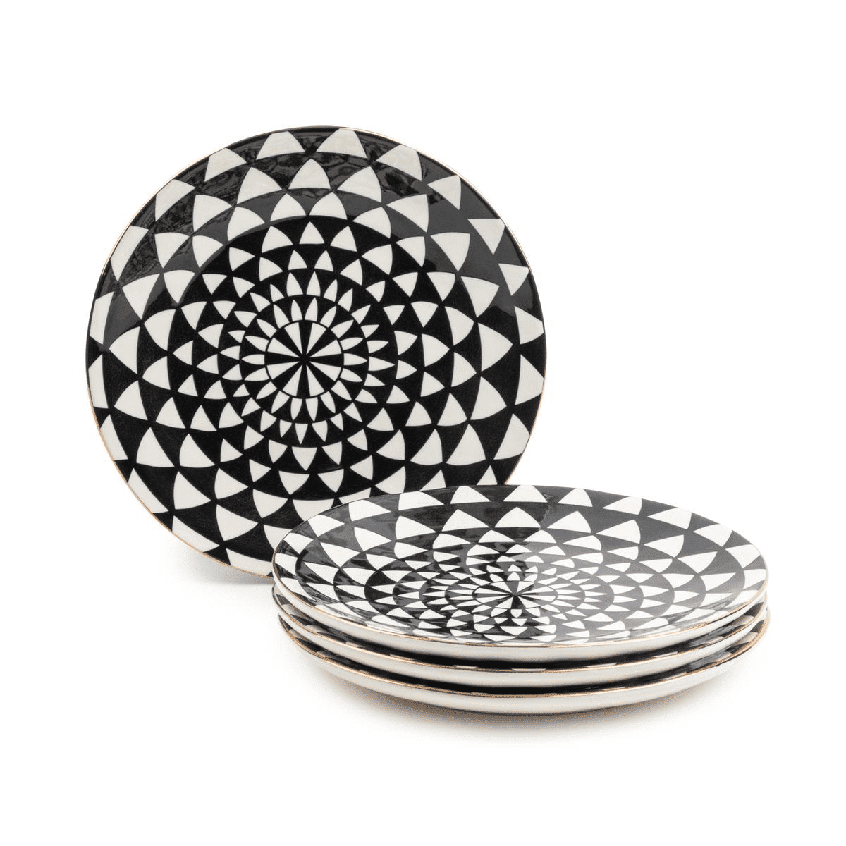 Thyme & Table Dinnerware Black and White Medallion Stoneware Dinner Plates, 4 pack