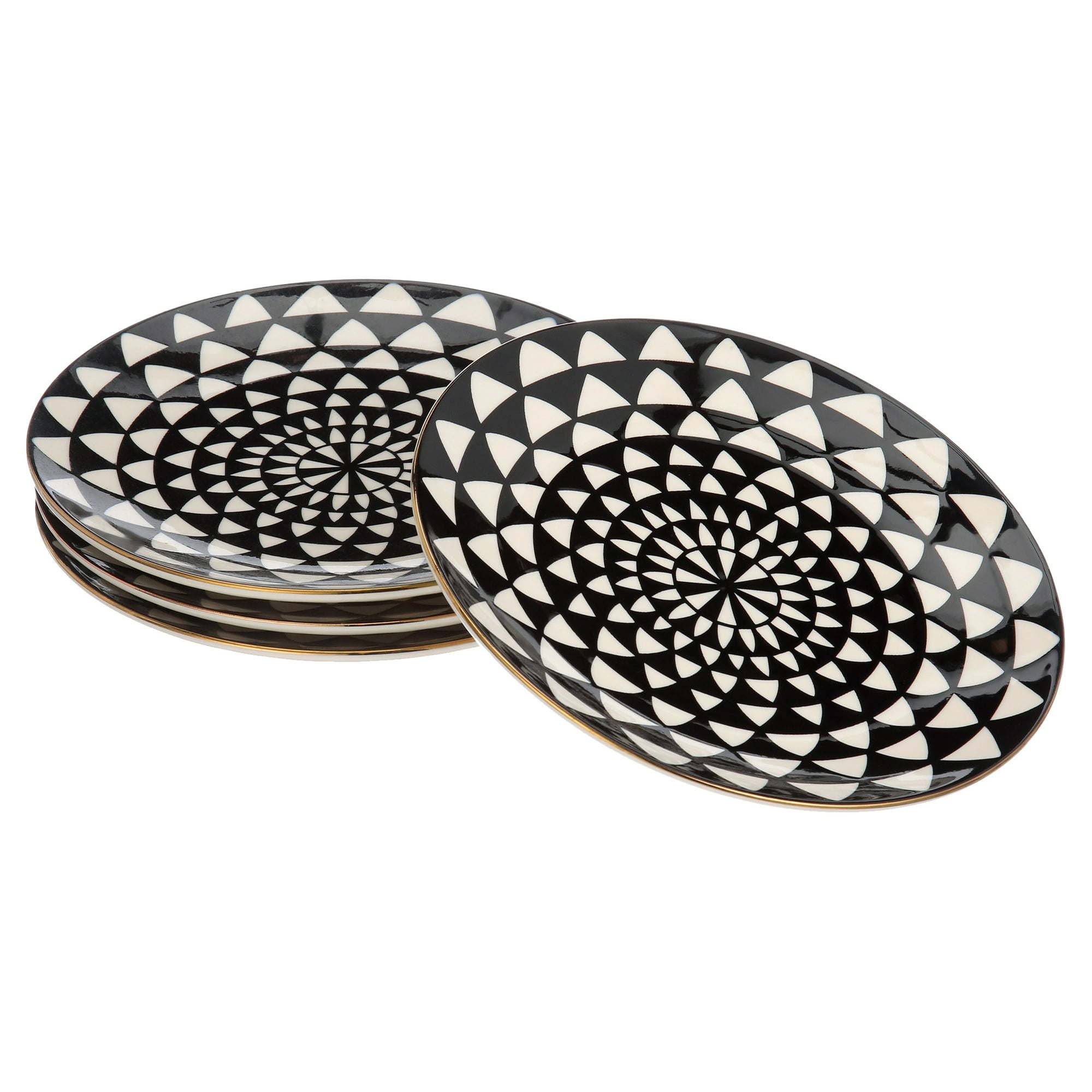 Black & White Medallion Stoneware Salad Round Plates, 4 Pack