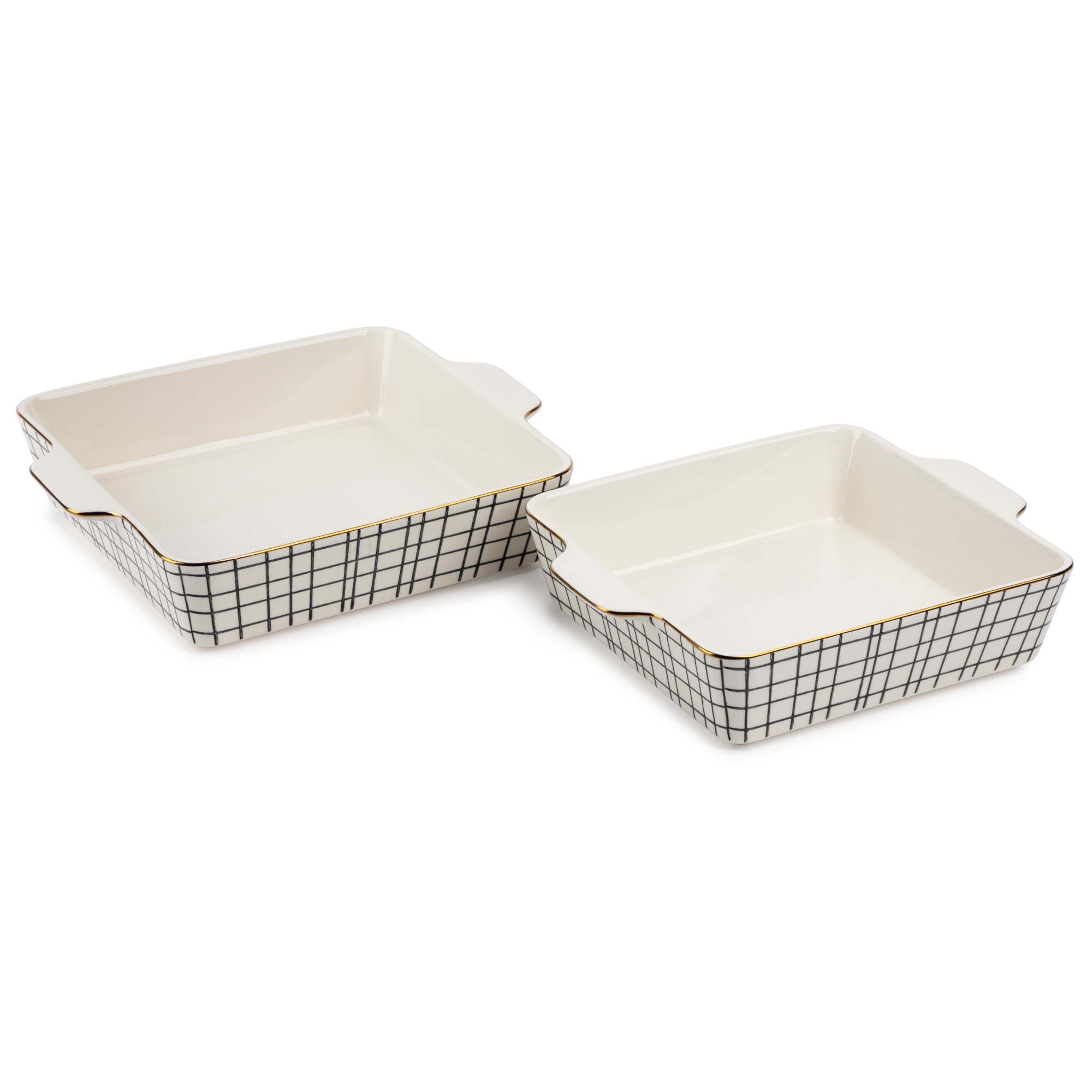 Thyme & Table Stoneware Square Baker, Black & White Crosshatch, 2-Piece Set