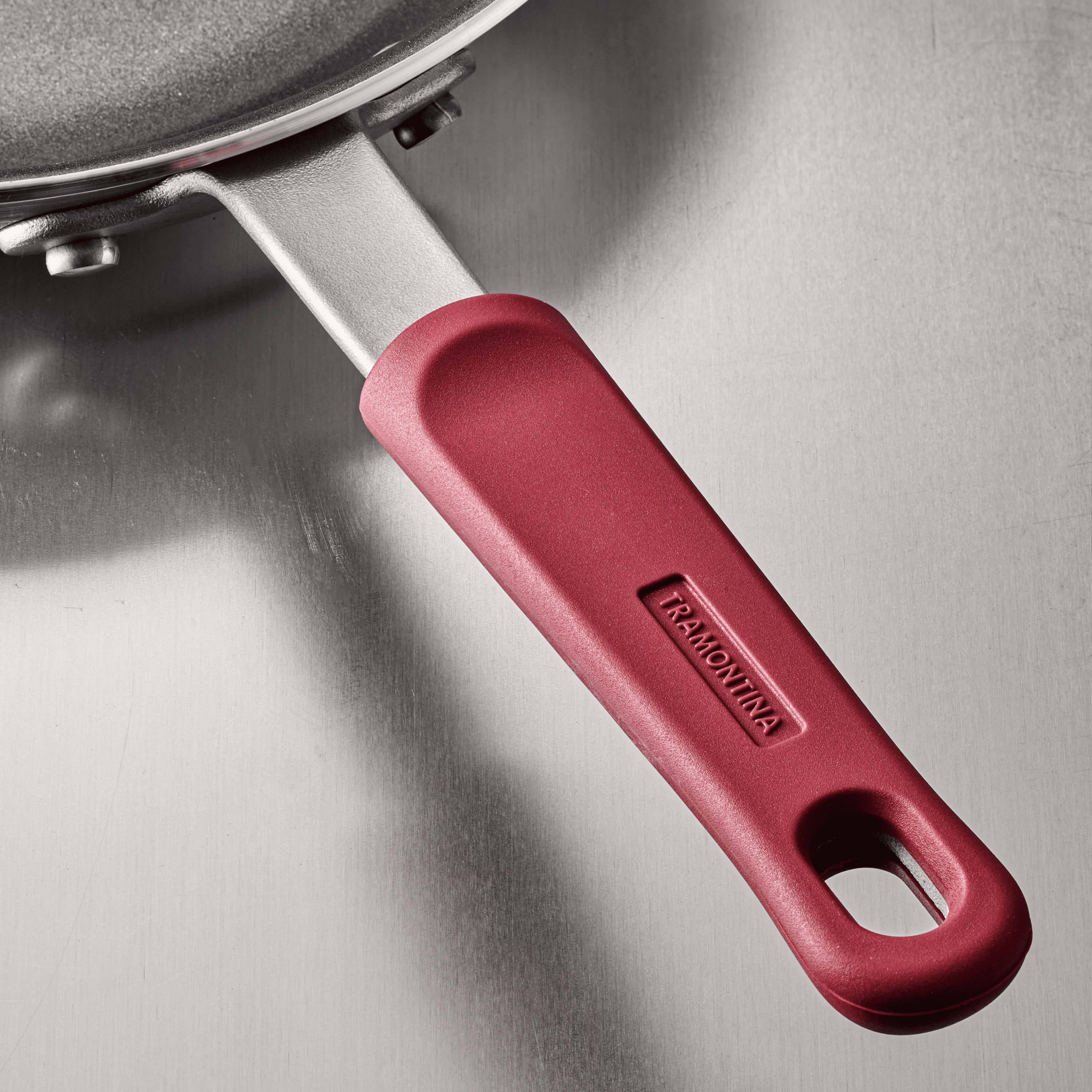 This 14-inch Fry Pan is the ideal size for cooking hefty portions – enough for a large family! Tramontina's Professional 14-inch Restaurant Fry Pan is designed and manufactured to withstand the rigors of a professional kitchen, and easily adapt to every day use. The fry pan's commercial-grade, heavy-gauge aluminum construction distributes heat quickly and evenly, while the reinforced nonstick interior allows food to easily release from the pan providing effortless cooking and cleanup. The cast stainless steel handle is riveted for added support and features a removable, silicone, soft-grip for versatility and maneuverability.