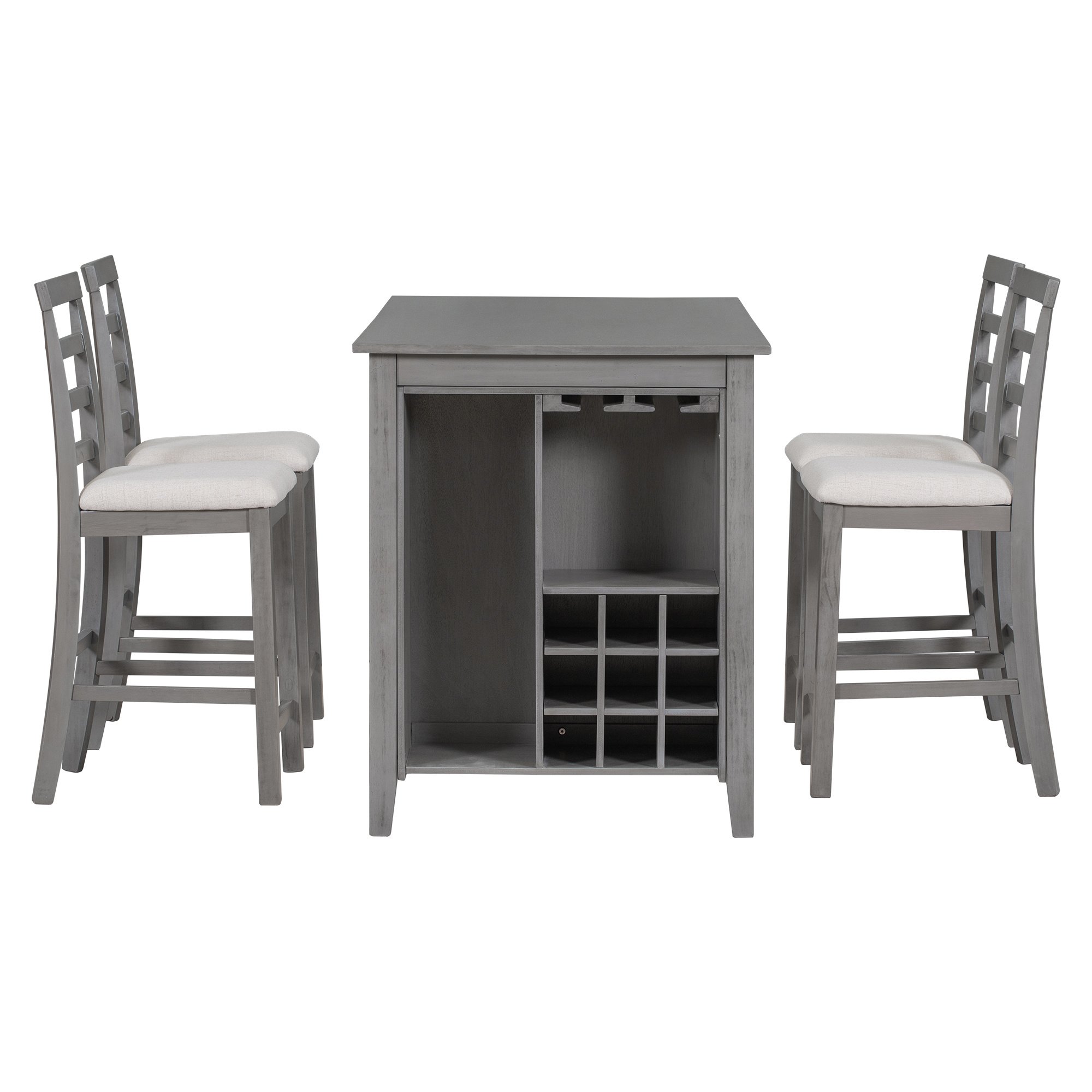 Full assembly required. This dining table set comes with detailed instructions, and it can be installed step by step following the instructions, which can help you complete the assembly as soon as possible.